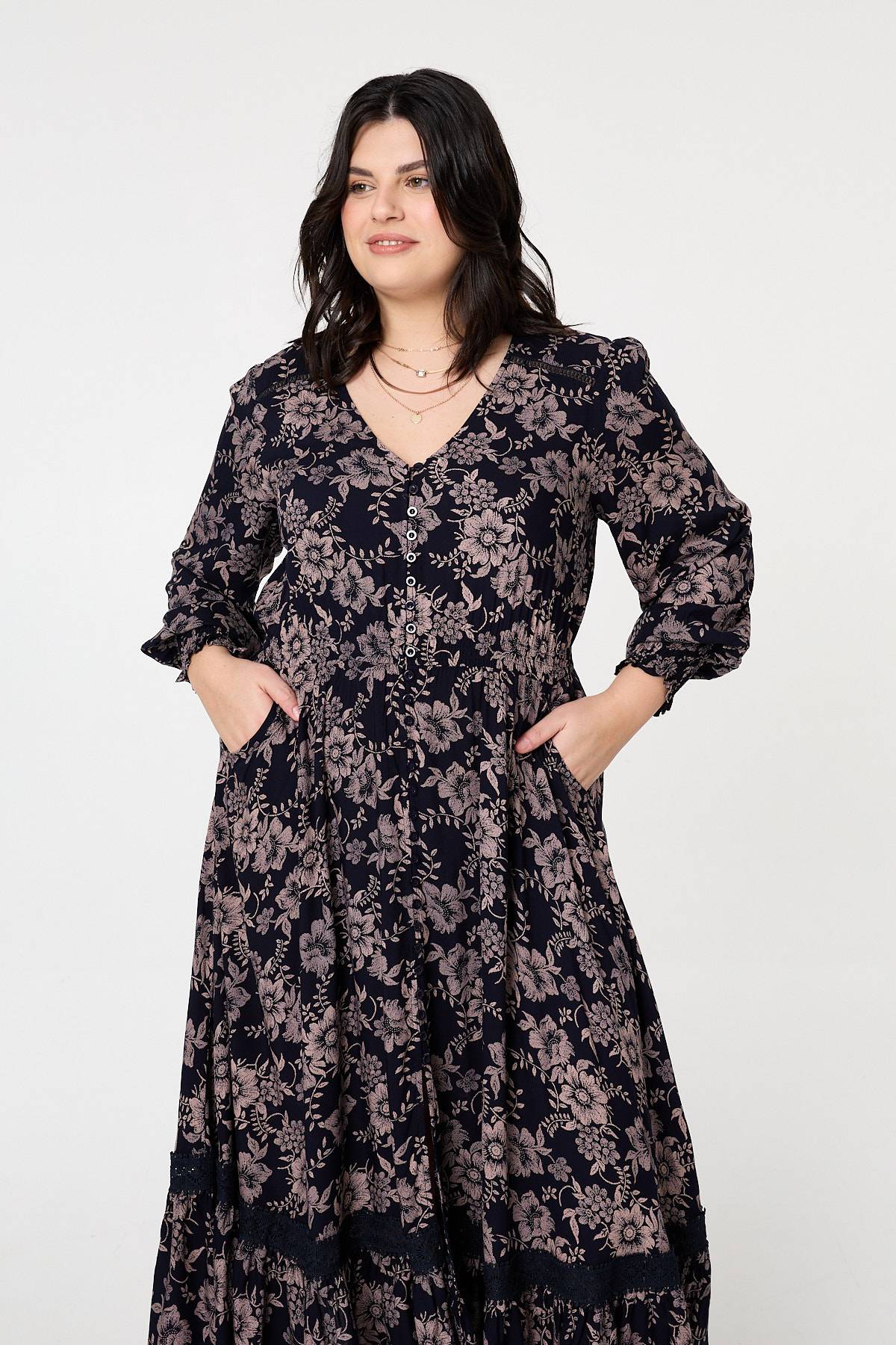 Curve Floral Long Sleeve Maxi Dress