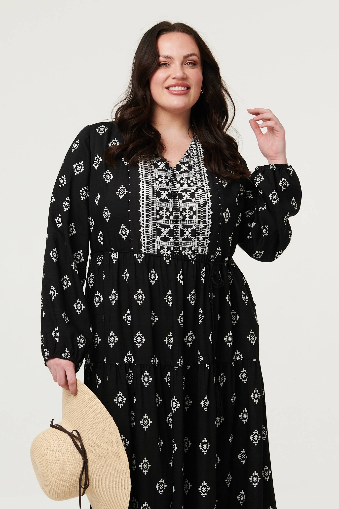 Curve Printed Long Sleeve Maxi Dress