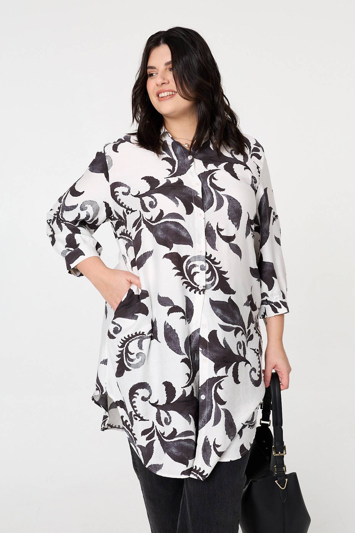 Curve Printed Relaxed Midi Shirt Dress