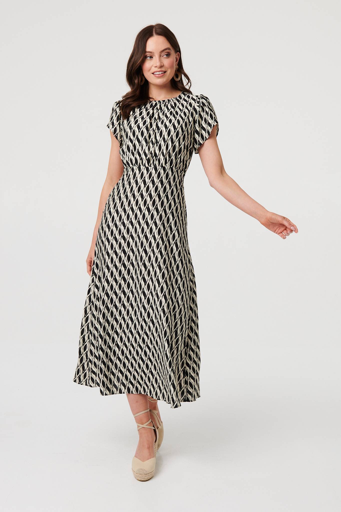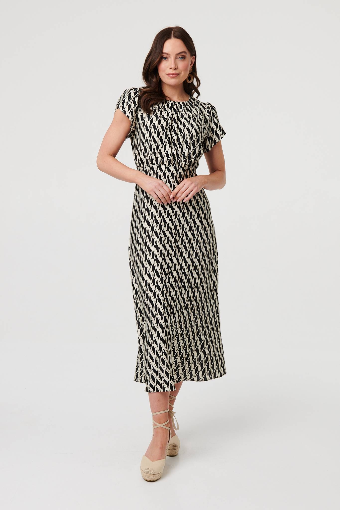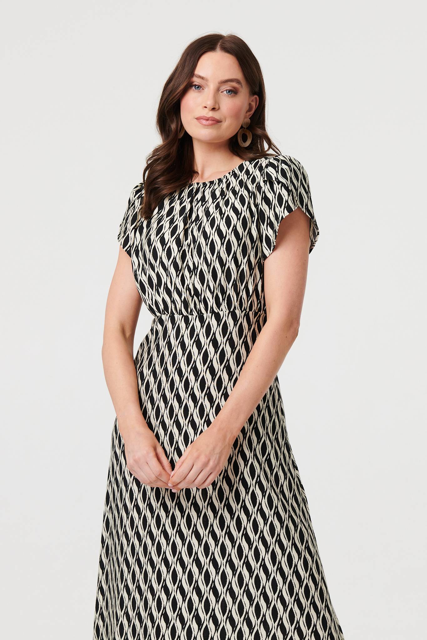 This beautiful dress will hug your figure in all the right places. It has flattering ruched waist and neckline details for a tummy-slimming look on all figures. It also features cap sleeves, a round neck and an a-line shape. Pair this midi dress with your favourite heels.