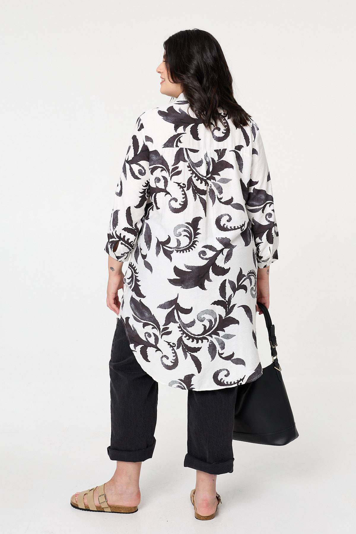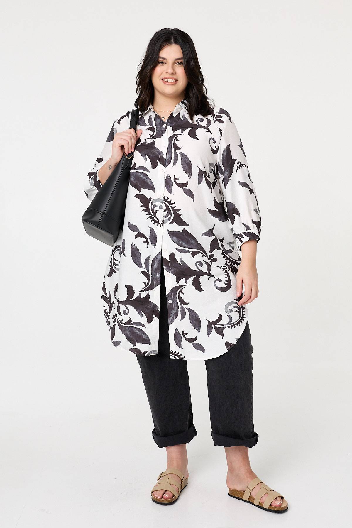 This casual shirt dress will make the perfect addition to your weekend and workwear wardrobe. It has a relaxed shape and a midi length hem that's slightly curved for extra coverage. It features a collar, buttons and 3/4 sleeves. Wear over leggings as a dress, or over trousers as a shirt.