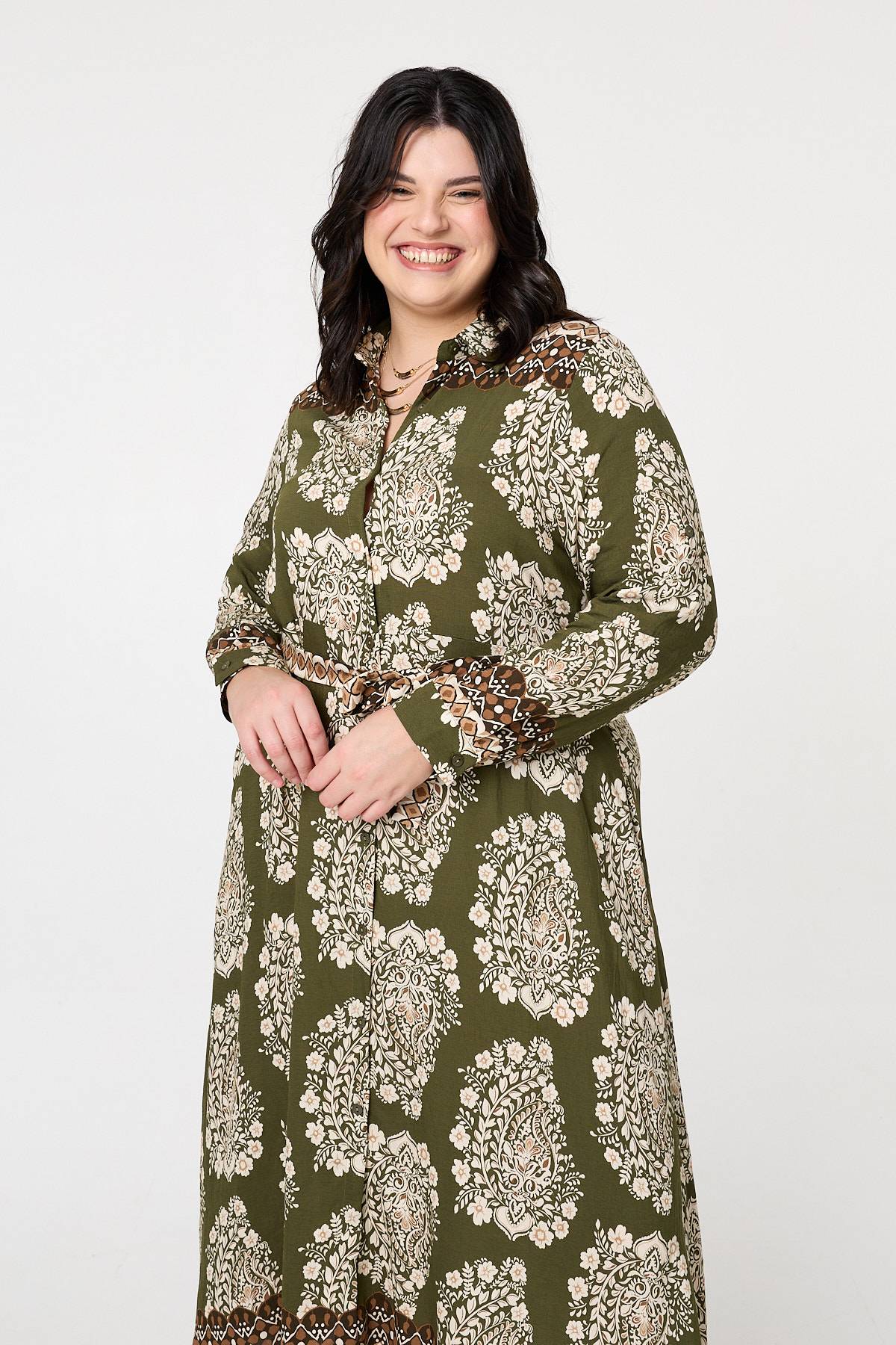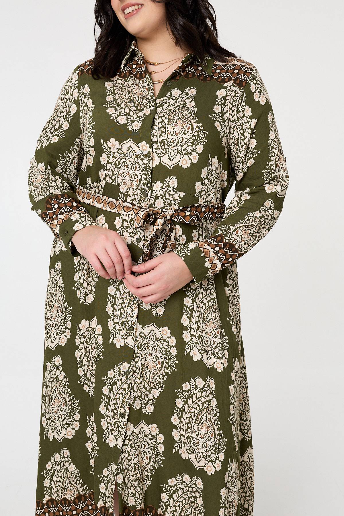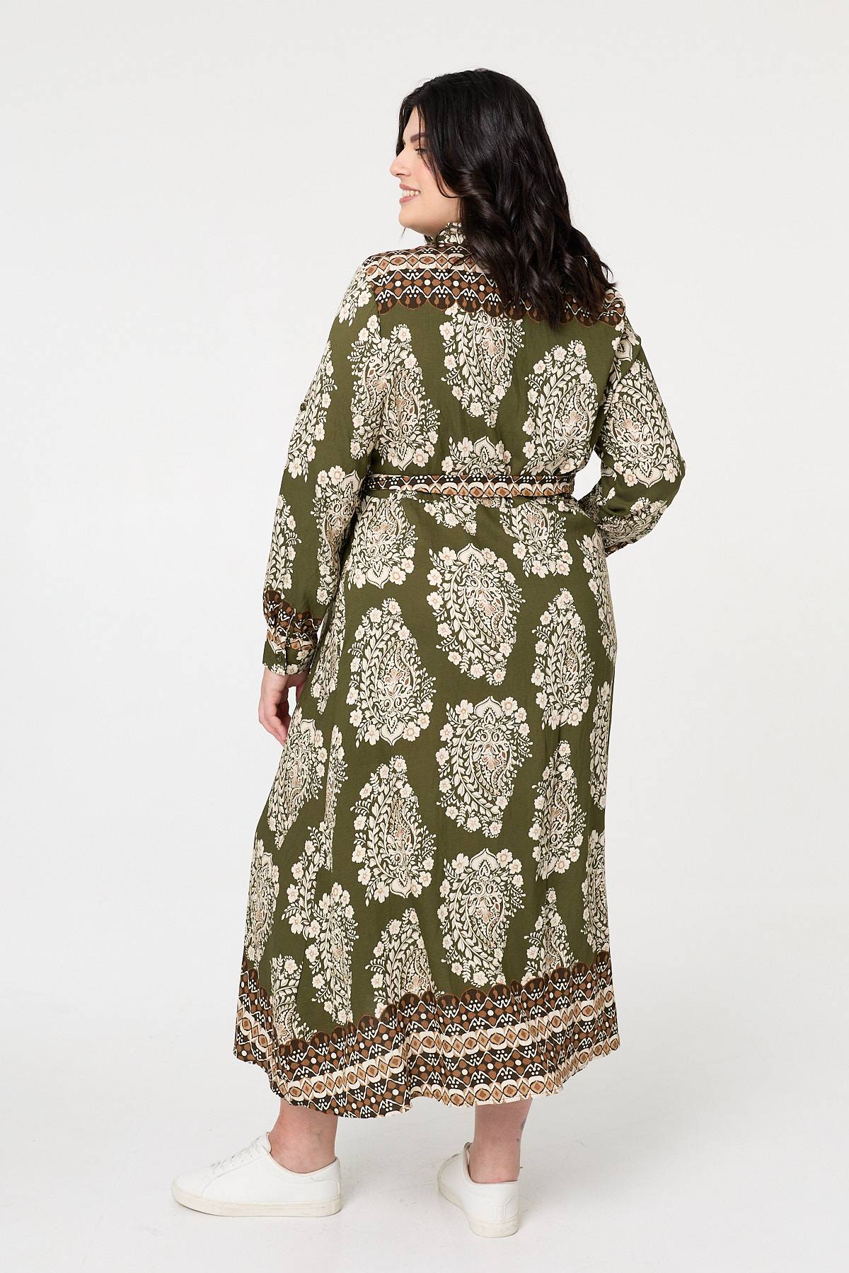 Dress for any occasion in this versatile shirt dress. It features a removable tie waist belt for the perfect fit around your waist every time. It also has a collar, long sleeves and a maxi length hem. Dress it up with your favourite heels and a matching clutch bag.