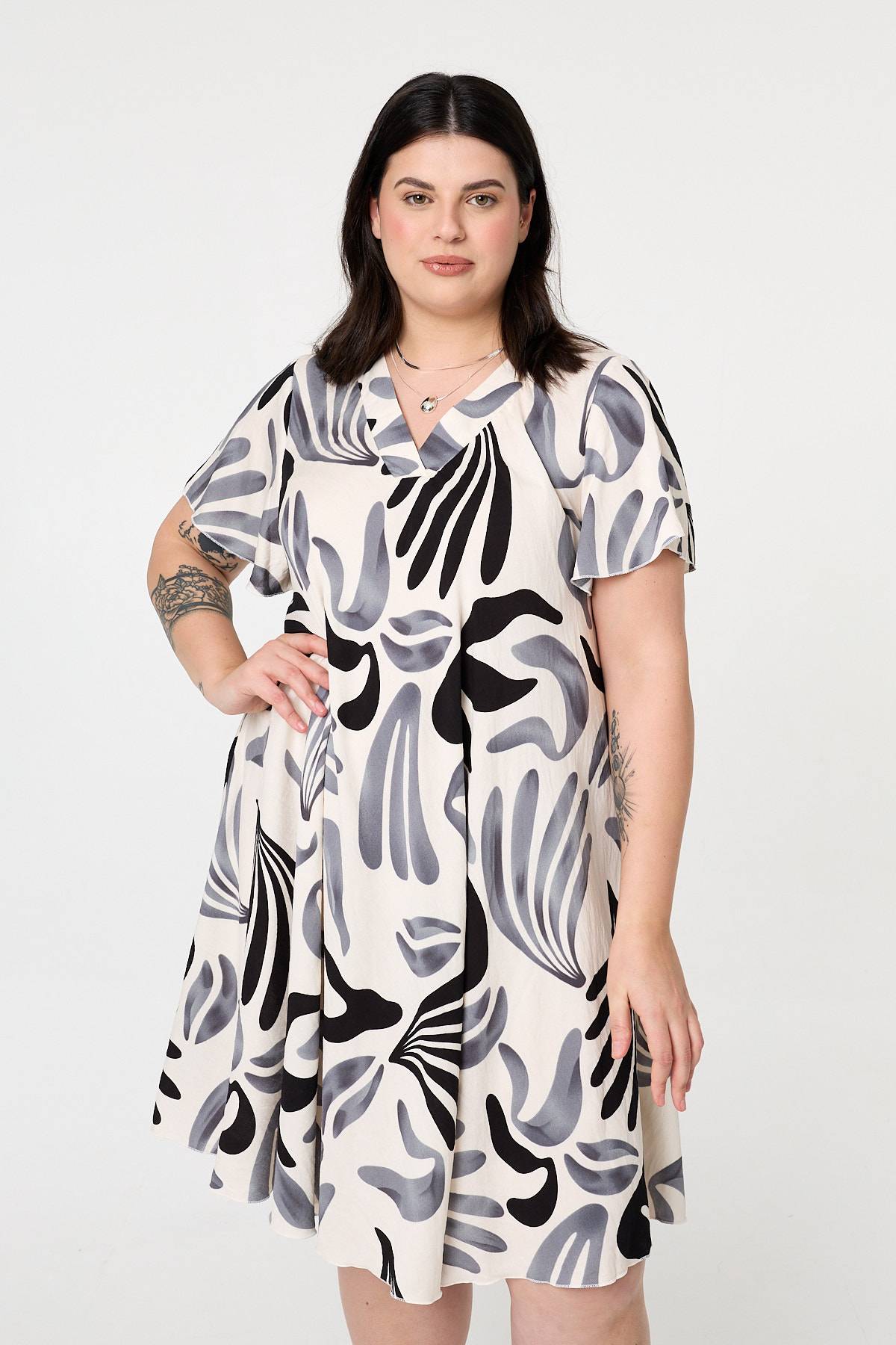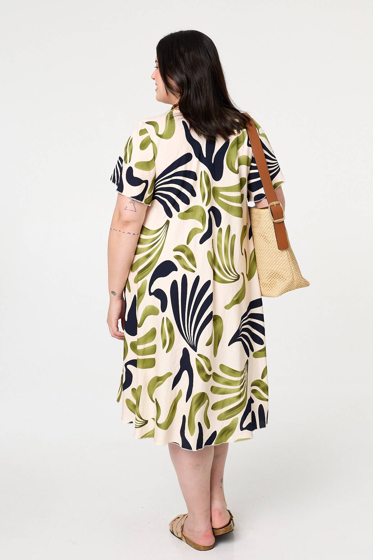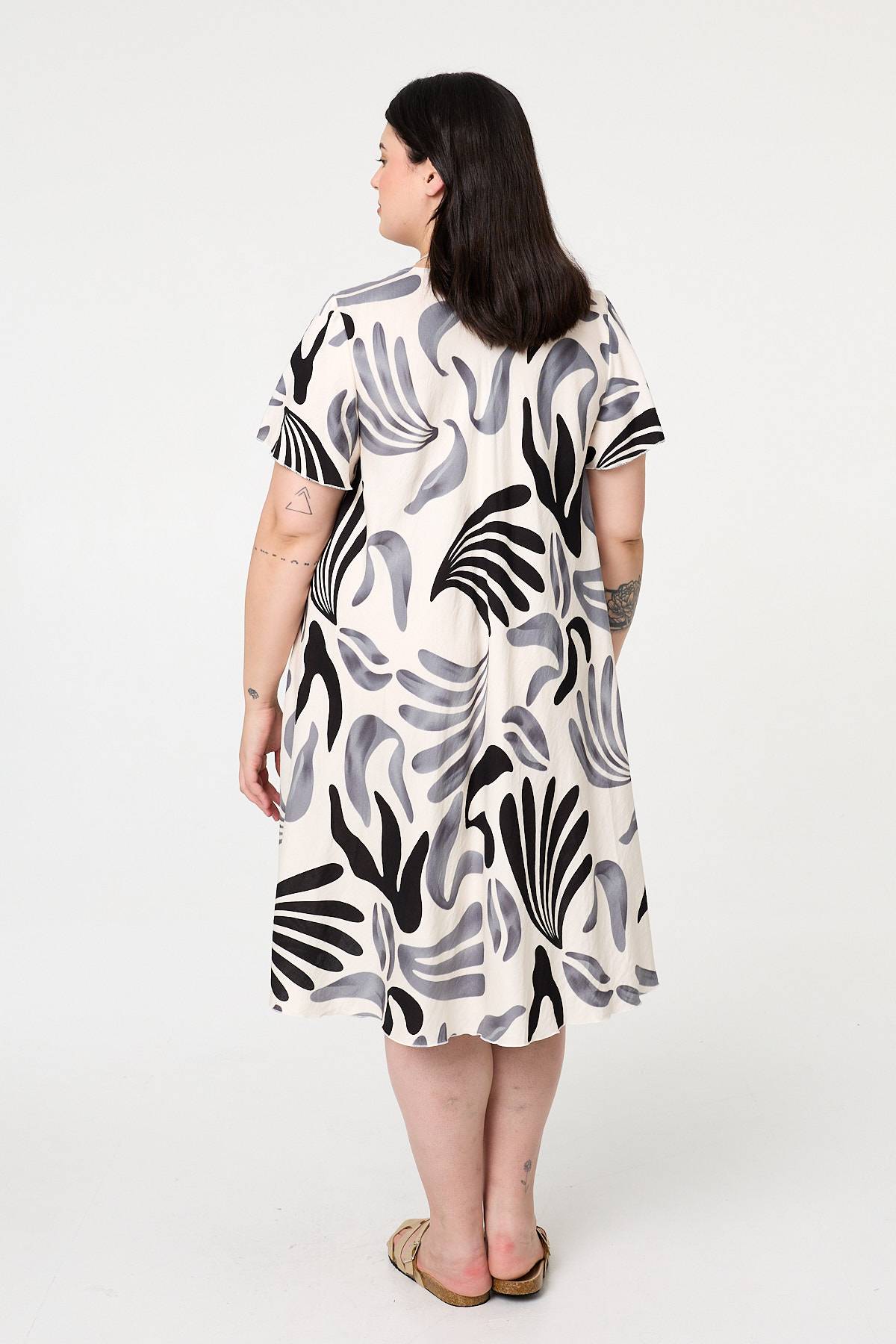 This midi shift dress is designed for style and comfort. It has a relaxed shape with short angel sleeves and a classic v-neck. Simply style with your favourite shoes for either a smart or a casual occasion.