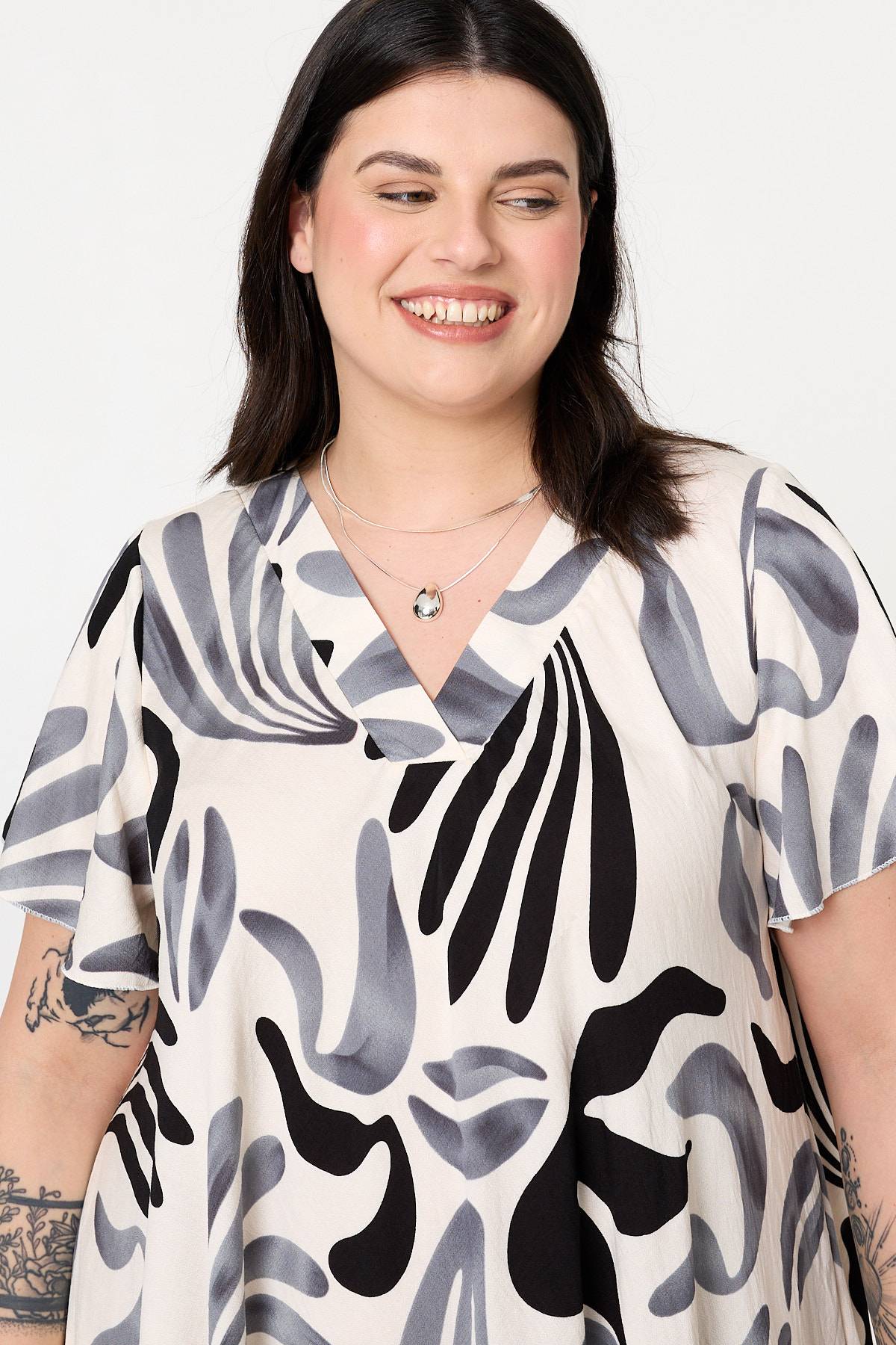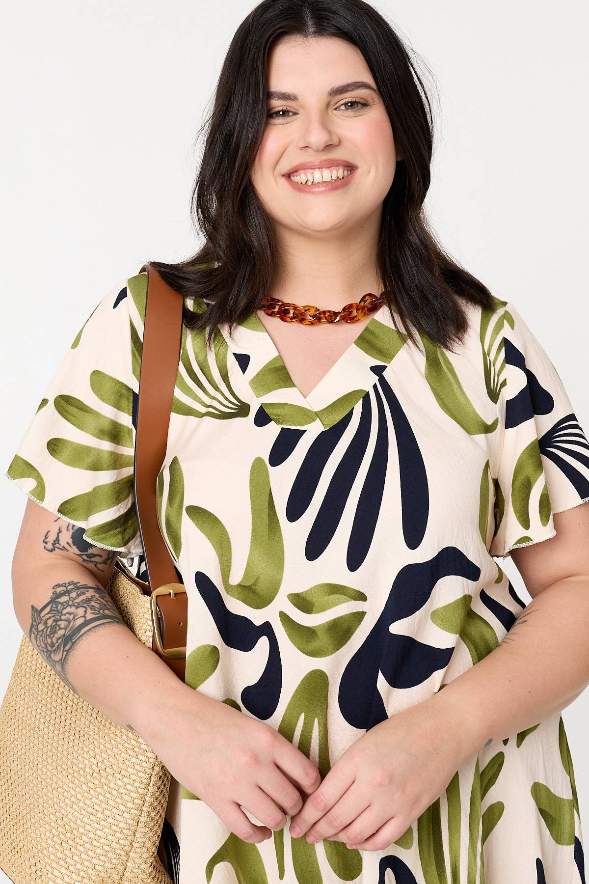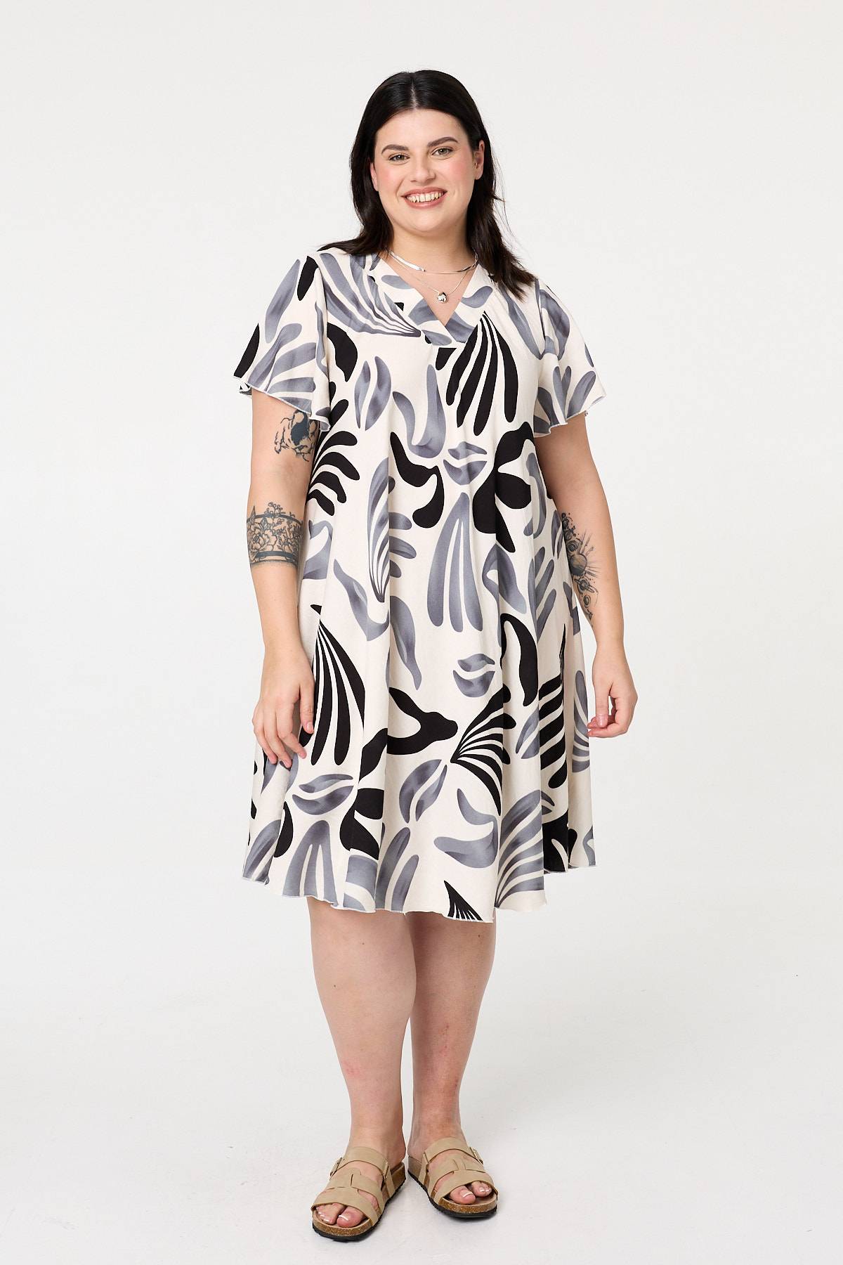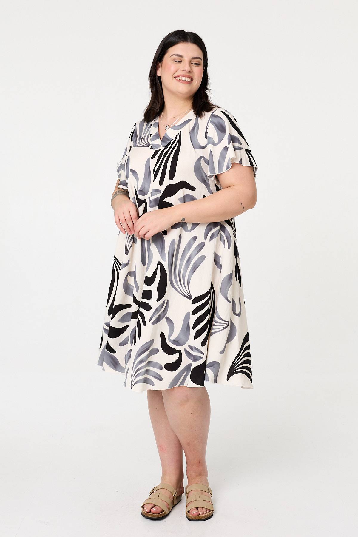This midi shift dress is designed for style and comfort. It has a relaxed shape with short angel sleeves and a classic v-neck. Simply style with your favourite shoes for either a smart or a casual occasion.