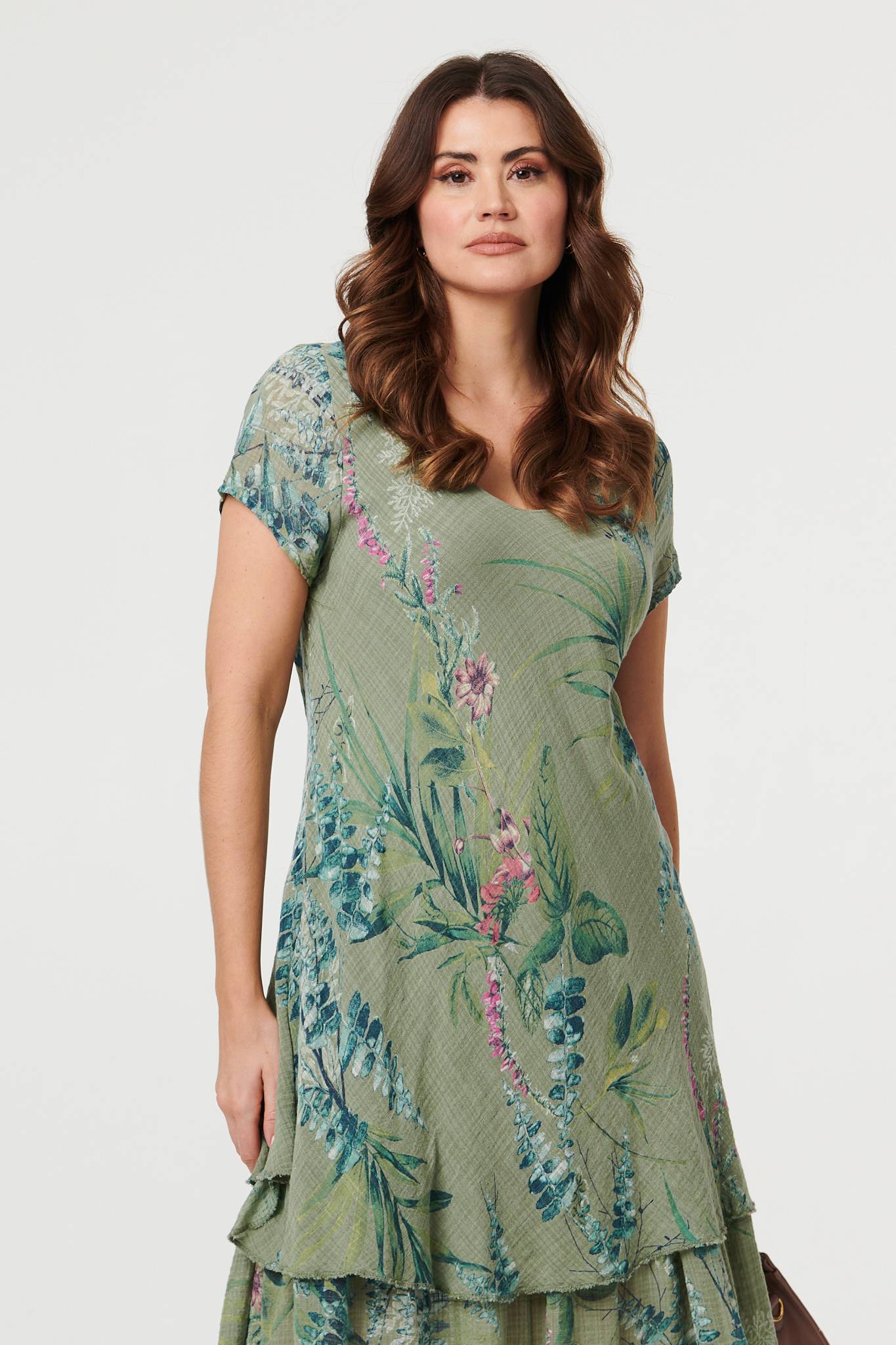 When it comes to relaxed style, this dress is perfect. It features a layered hem design, along with a floaty relaxed fit, so it's perfect for warm summer days. It also has a v-neck and short sleeves. Style with sandals for a day or evening out.
