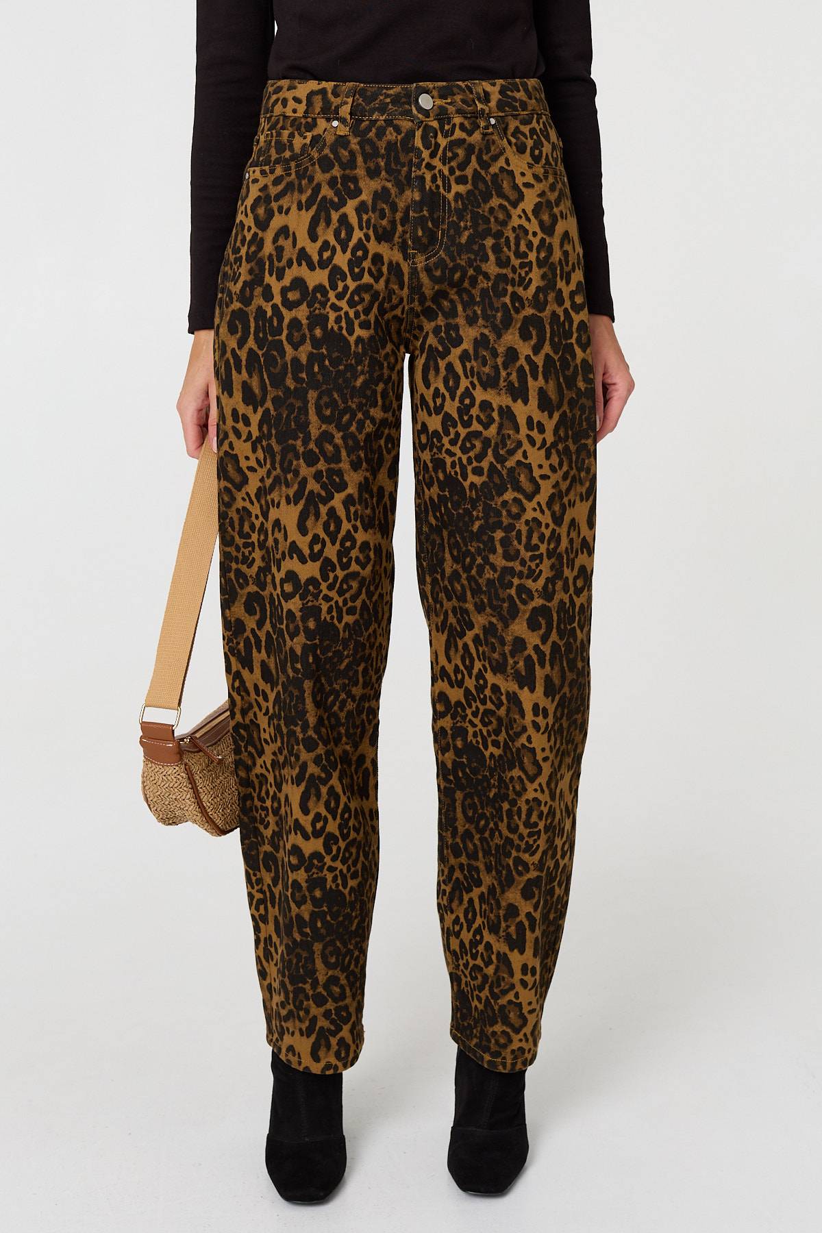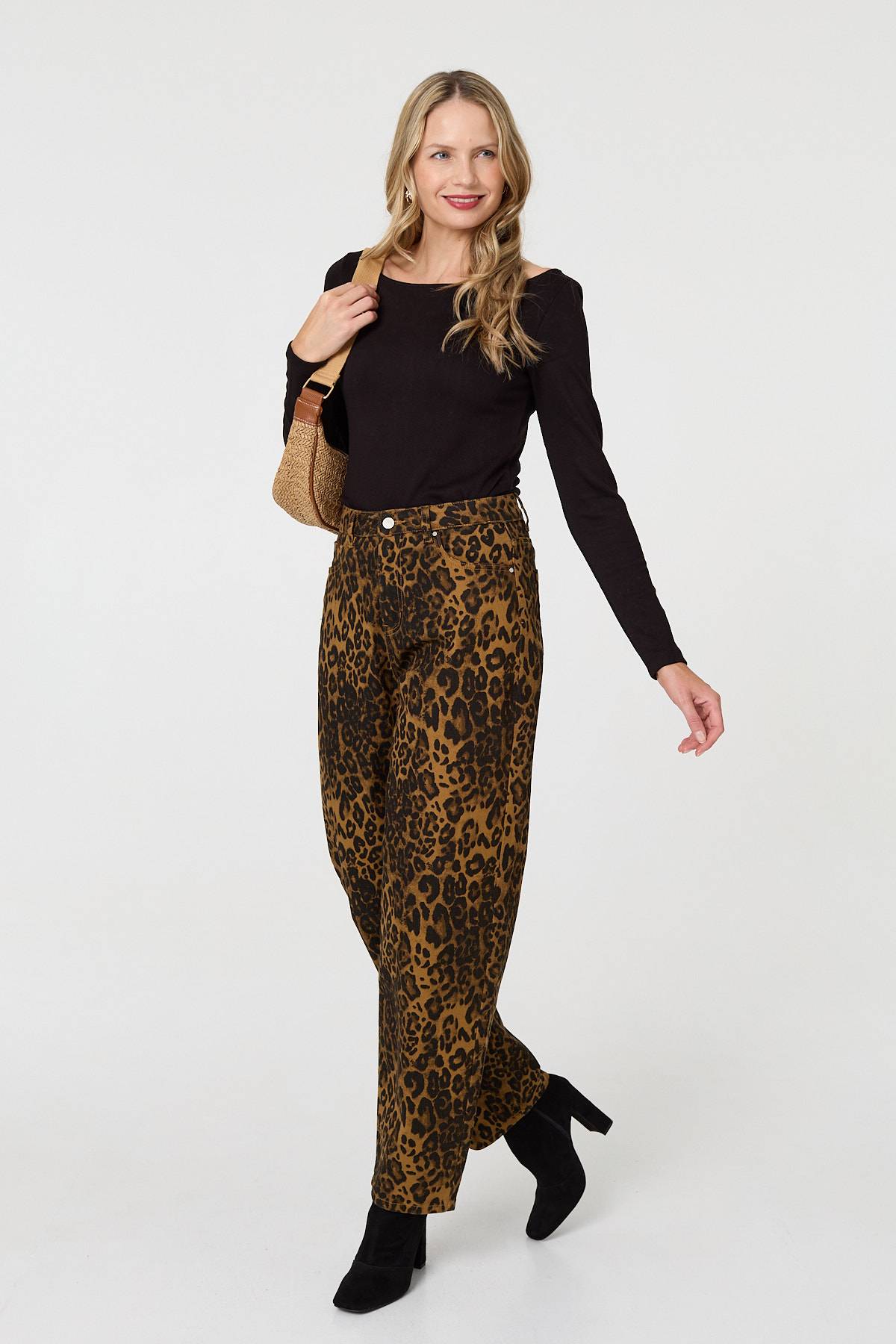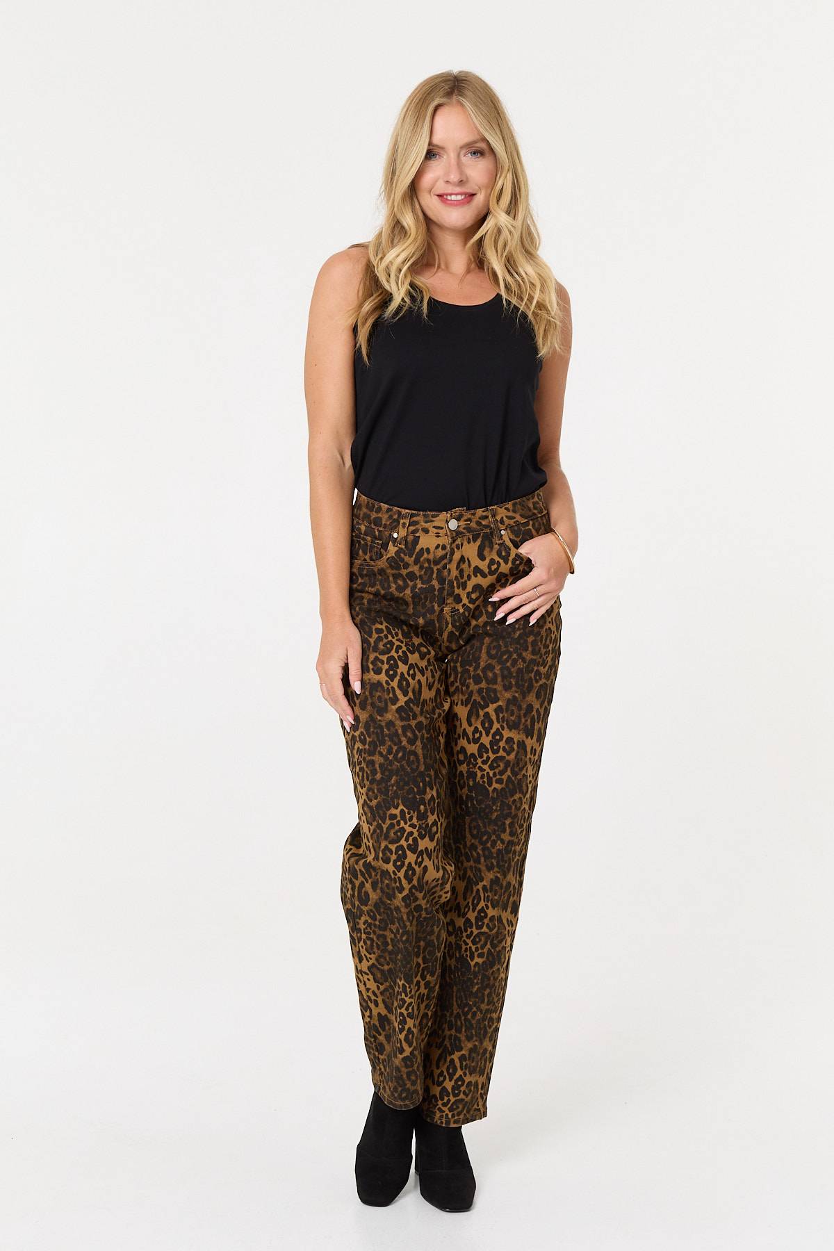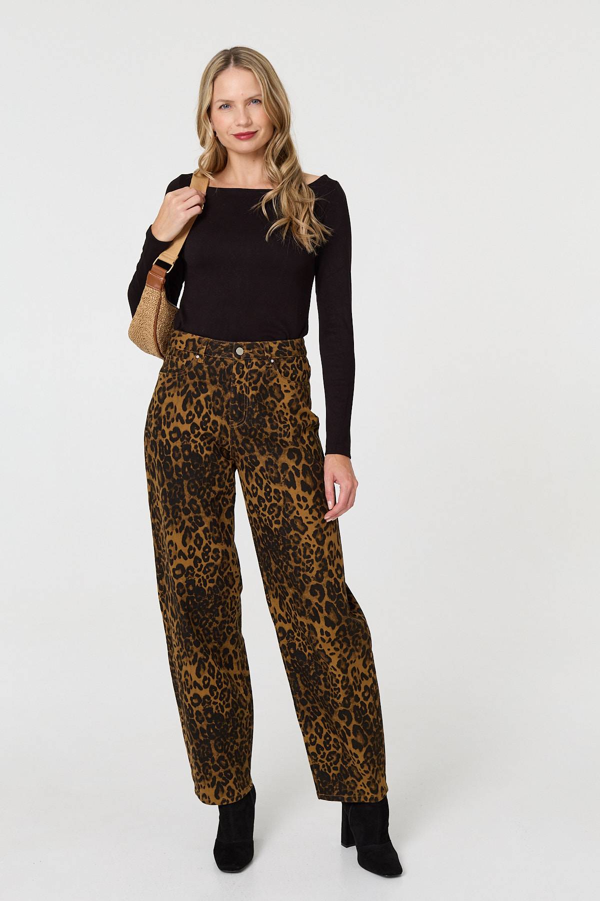 Every wardrobe needs a pair of leopard print jeans. These ones have a high waist, a straight wide fit and full length legs. They also feature handy pockets and fasten with a button. Wear these with a smart top for an evening out, or go casual with a simple t-shirt.