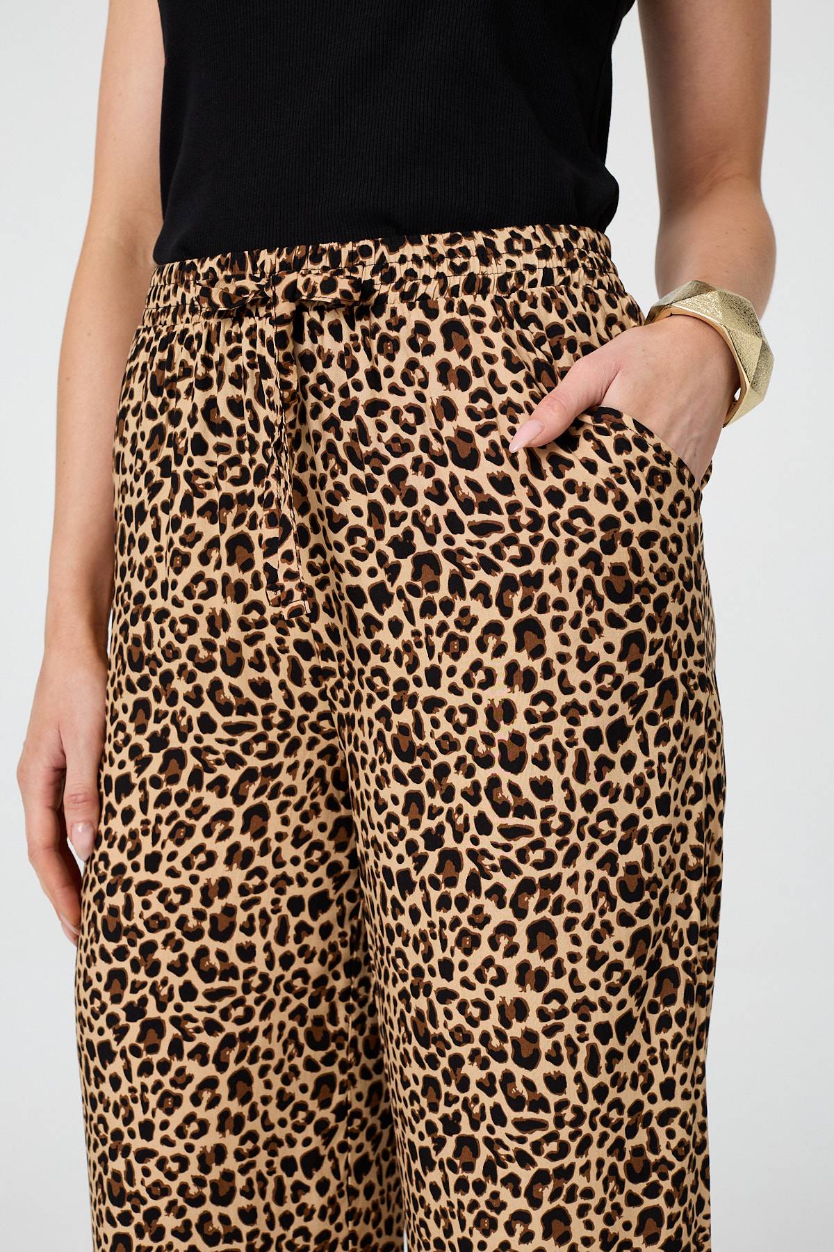 These comfy trousers have an adjustable high waist for the perfect fit. They have a wide leg shape that reaches ankle length, and even feature hidden pockets. Wear them with trainers and a plain top this summer.