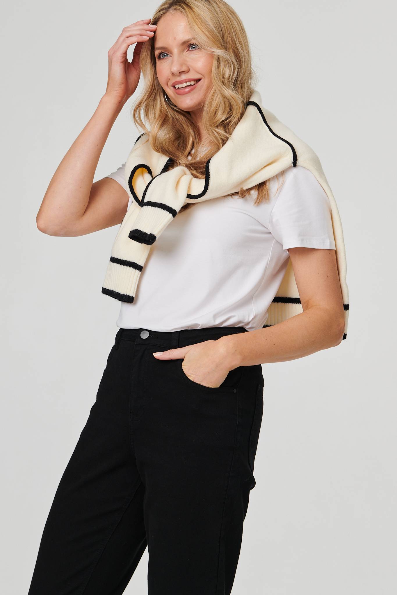 Every wardrobe needs a simple pair of slim fit jeans. These have a flattering high waist fit, with cropped hems for a laid-back, effortless look. They're finished with pockets and belt loops. Wear them with a smart top for an evening out, or keep it casual with a simple t-shirt.