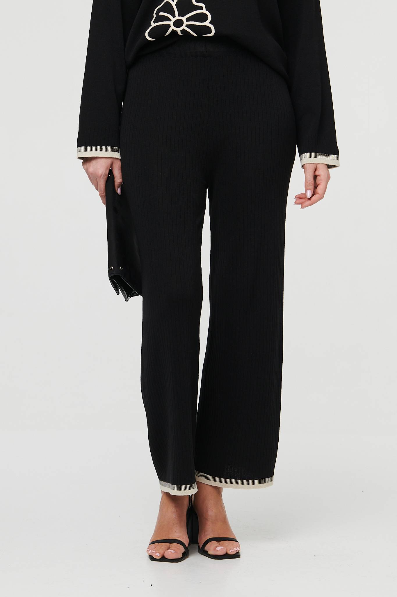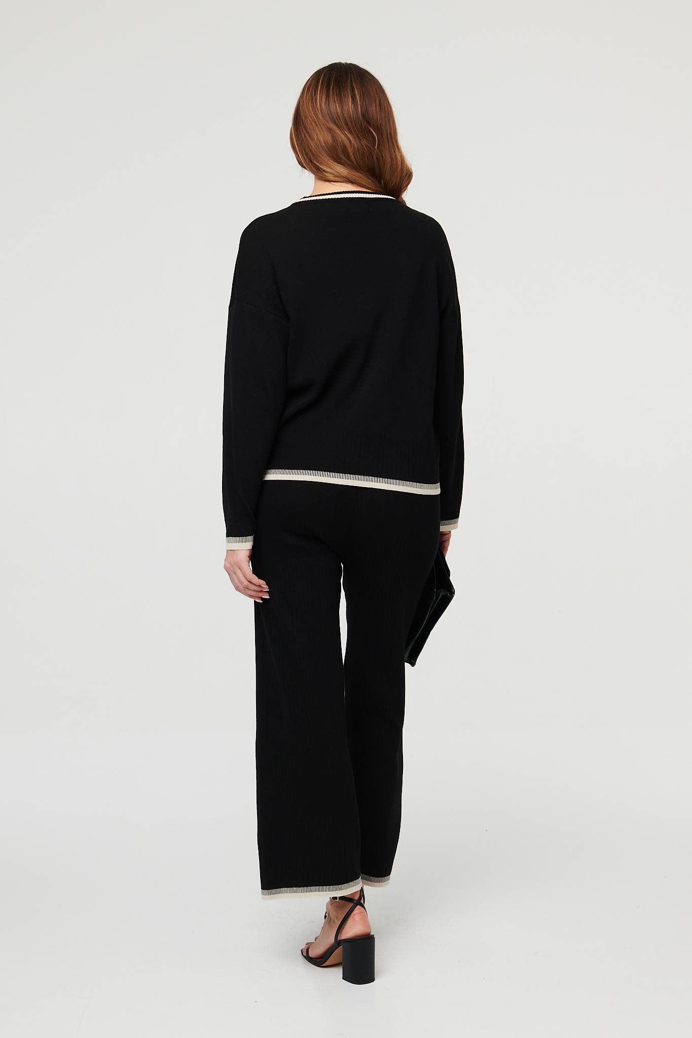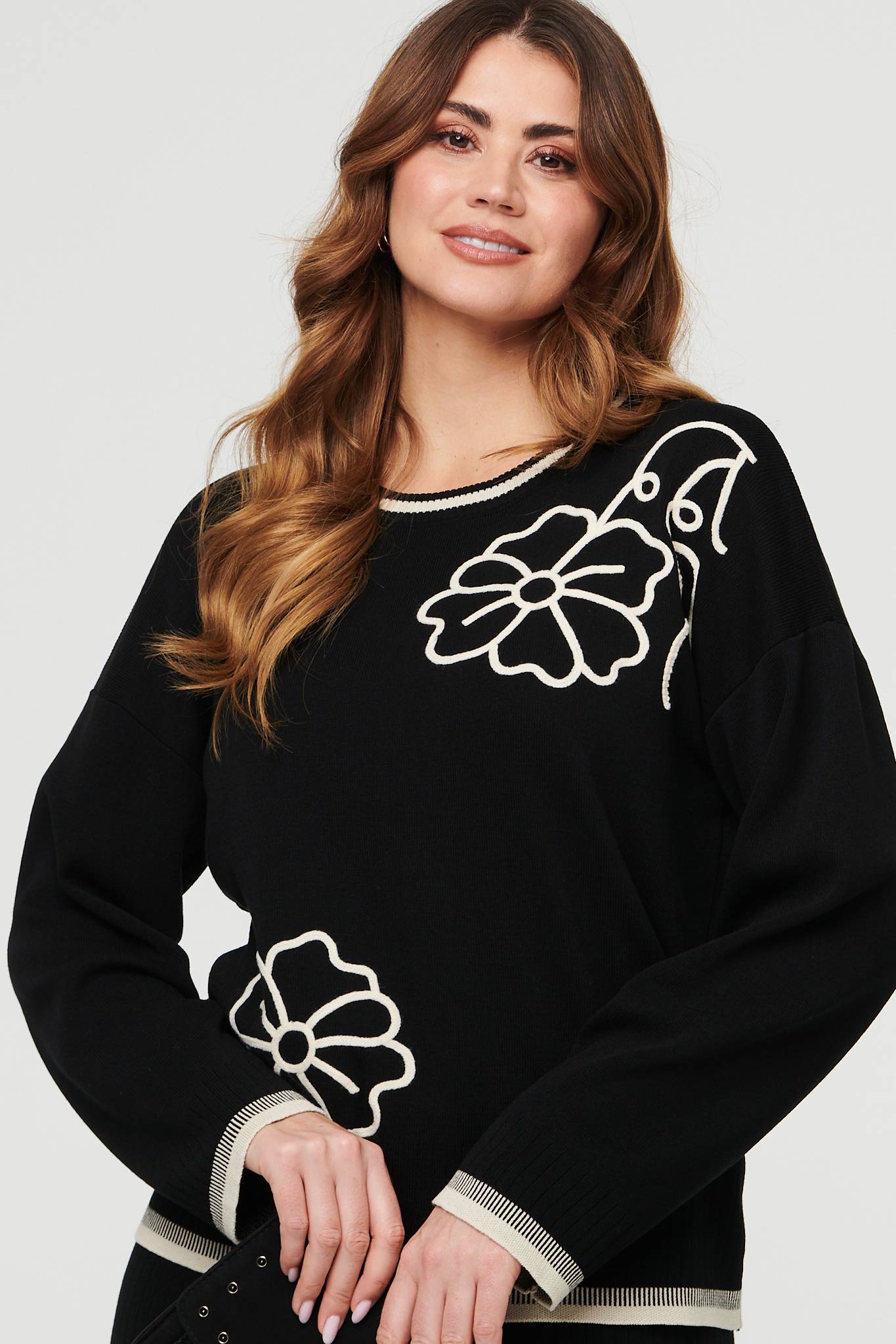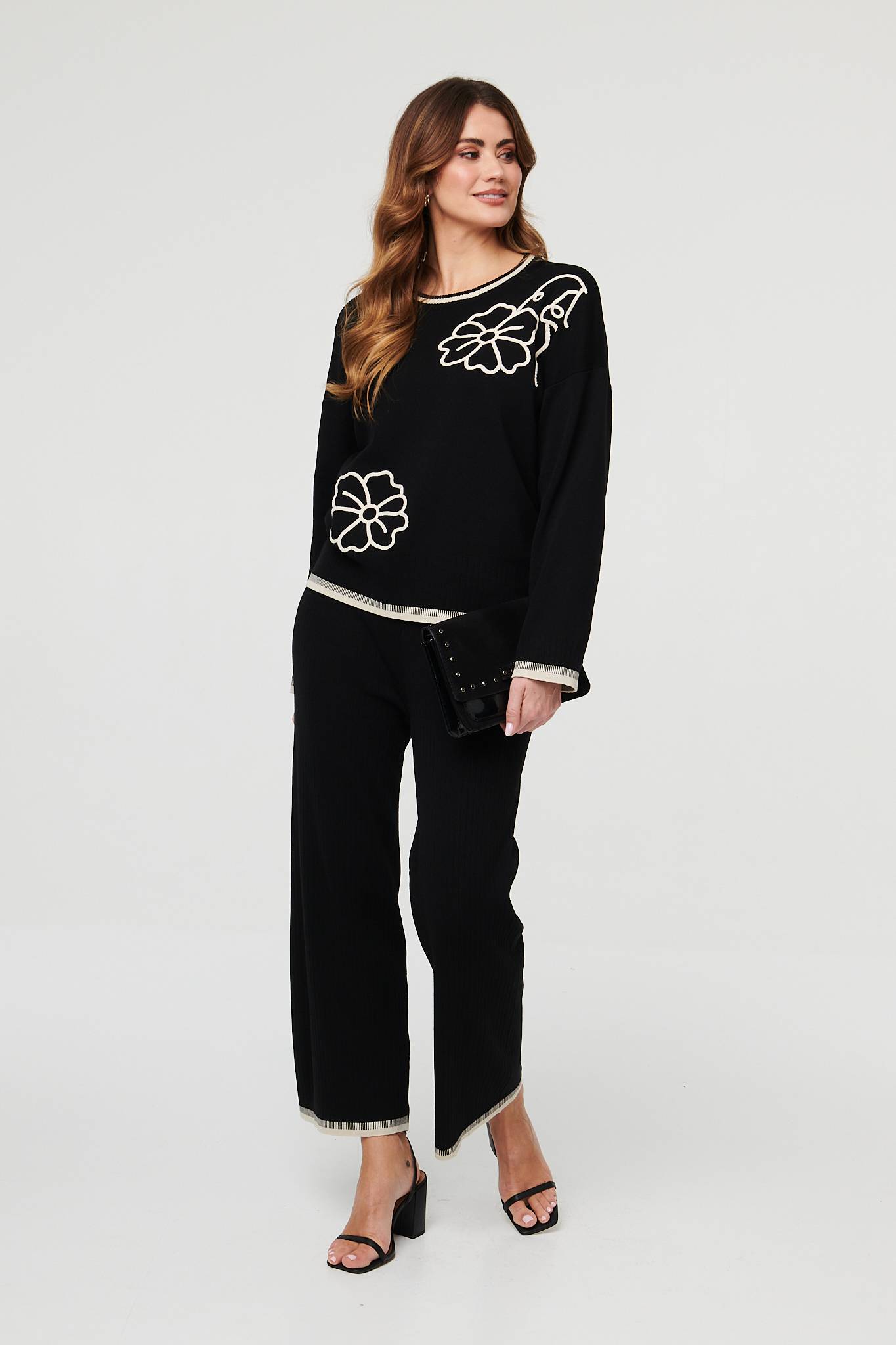 This comfortable matching loungewear set includes a jumper and a co-ordinating pair of trousers. The jumper has a floral trim detail, long sleeves with drop shoulders, and a relaxed fit. The trousers are in the same matching material, with a high waist and wide legs. Wear this matching loungewear set for a co-ordinated look with minimal effort - or style the top and trousers separately for double the outfit inspiration.
