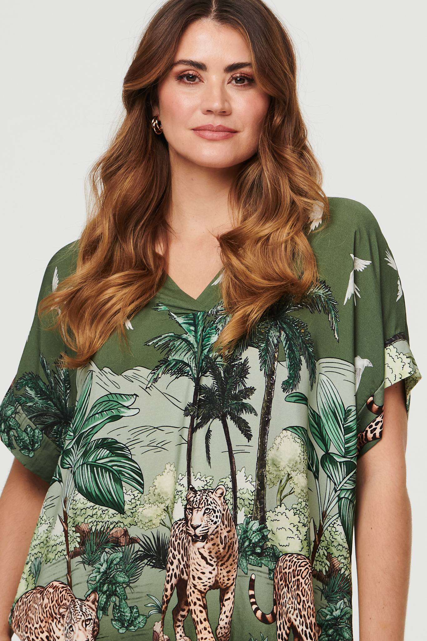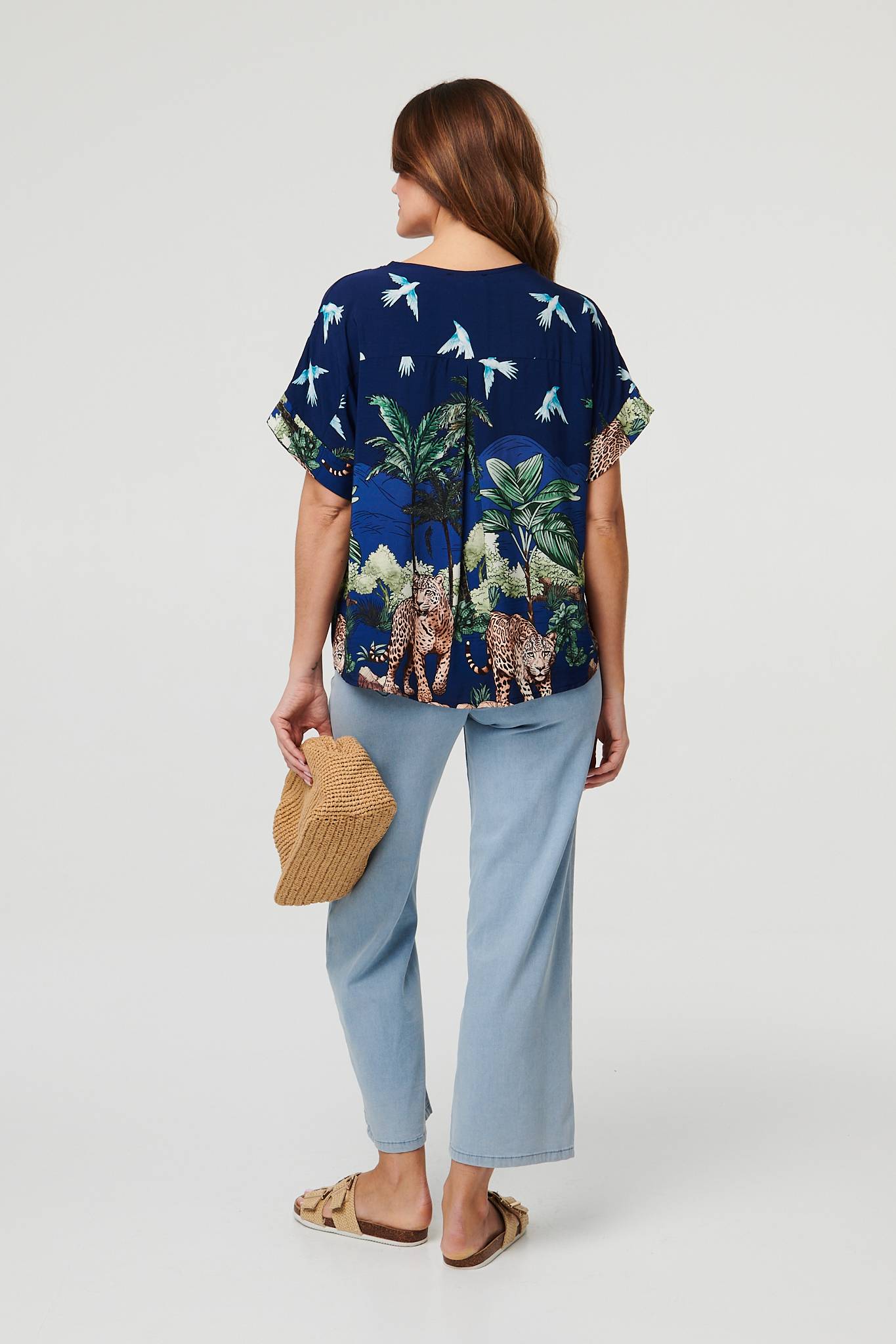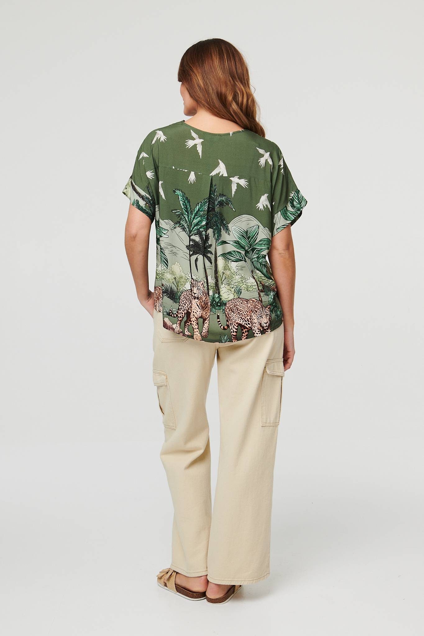 This boxy top has short sleeves, a v-neck and a relaxed fit. It features a hip length hem and layers perfectly over your waistband for a laid-back look at work or on the weekend.
