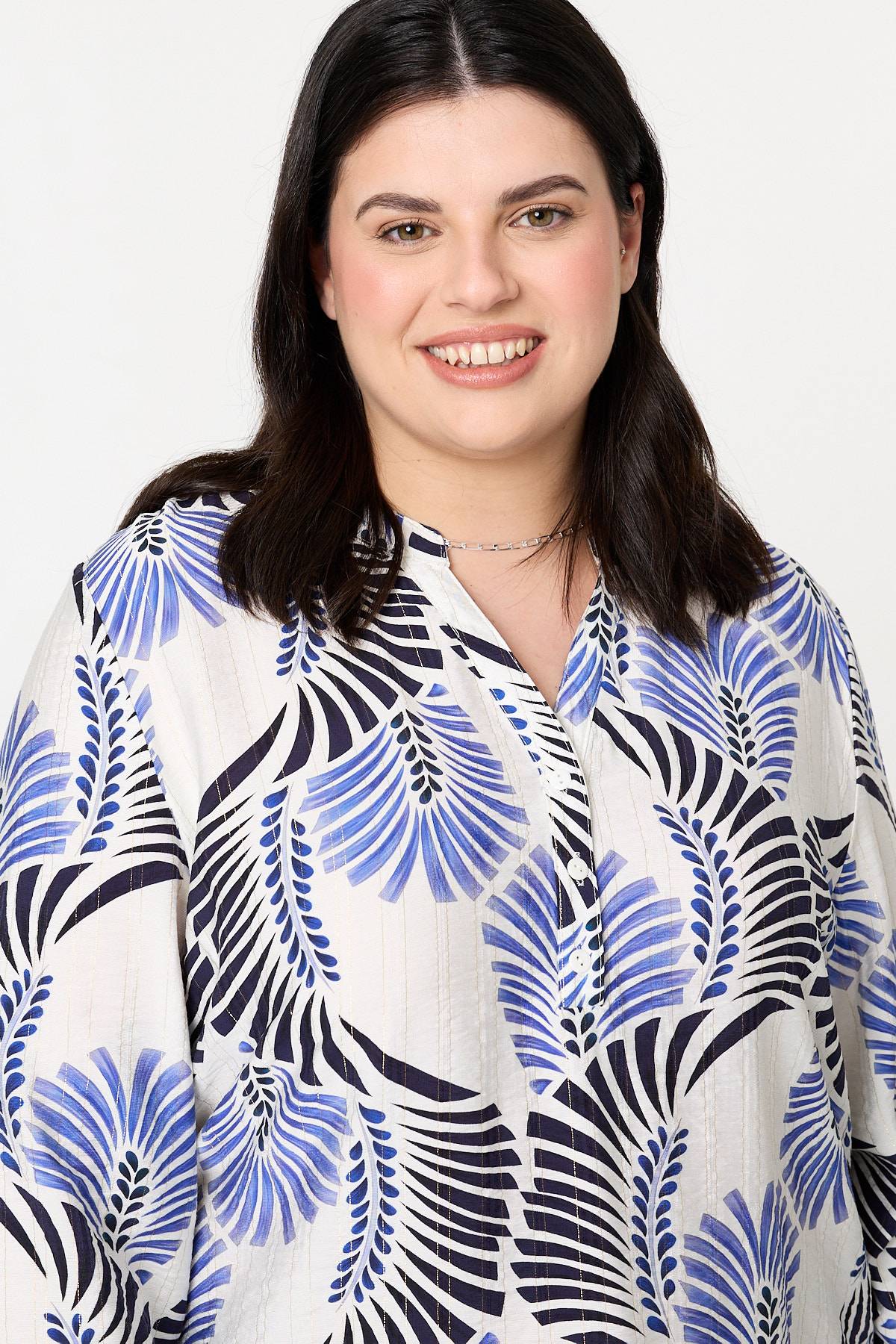 Dress for smart casual occasions in this comfy blouse. It has a v-neck, buttons and turn-up long sleeves. The relaxed fit means this top is perfect for both professional and laid-back occasions.